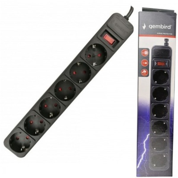 Električni porodužni kabl sa 6 utičnih mesta, prenaponskom zaštitom, svetlećim prekidačem